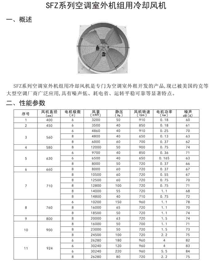 十、SFZ 系列空調(diào)室外機組冷卻風機