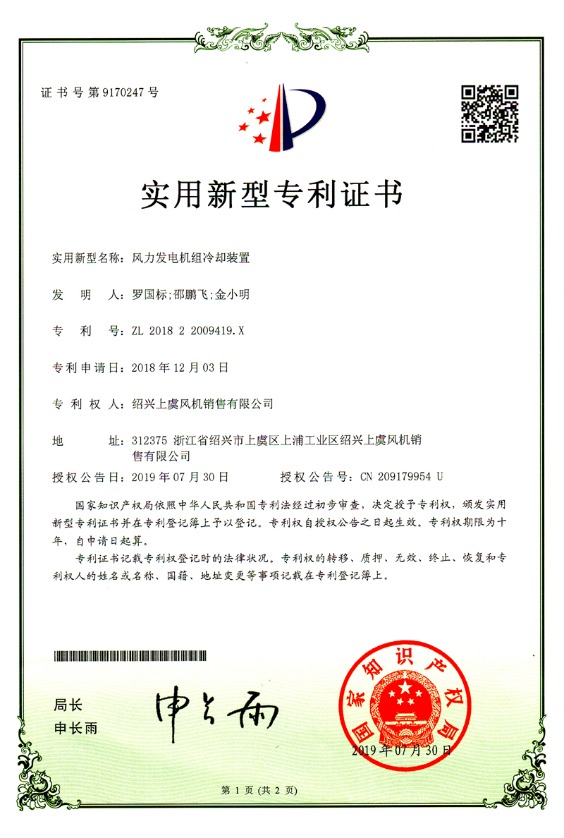 智能自動(dòng)化風(fēng)機(jī)殼體生產(chǎn)設(shè)備 多功能旋壓機(jī) 消防排煙風(fēng)機(jī)用的散熱裝置 風(fēng)力發(fā)電機(jī)足冷卻裝置專利證書(shū)